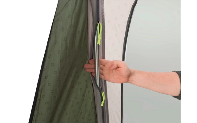 Das Outwell Avondale 6PA hat einen Panoramaausblick und ist ideal für lange Ferien während der Campingsaison. Perfekt für größere Familien, die sich viel Platz und praktischen Komfort wünschen. Ein tiefes Vordach mit Seitenfenstern über der vollständig zu öffnenden Front bietet einen gemütlichen Platz zum Entspannen im Freien. Für noch mehr Flexibilität können die vorderen Paneele auf beiden Seiten des Vordachs herausgenommen oder weggerollt werden, um einen flexiblen Schutz zu bieten. Für eine gemütliche Atmosphäre lässt sich die Belüftung in dem lichtdurchfluteten, luftigen Zelt leicht einstellen, wenn alle zum Essen, Spielen und Entspannen zusammenkommen.